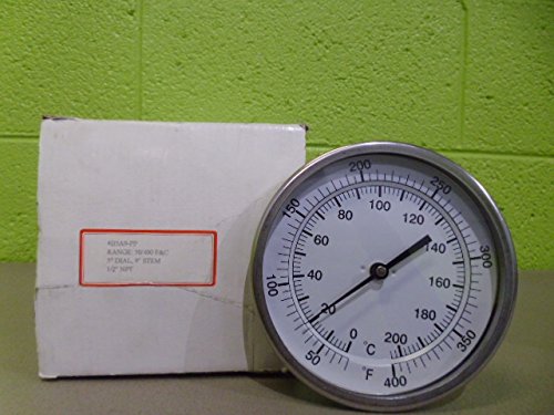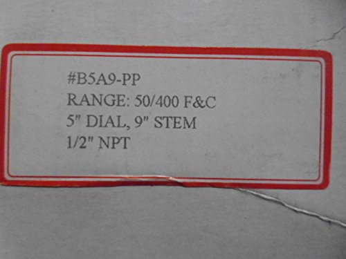 PIC Gauge B5A9-PP Stainless Steel Bimetal Thermometer with Adjustable Angle, 5" Dial Size, 9" Stem Length, 50/400° F and 50/400° C Temperature Range