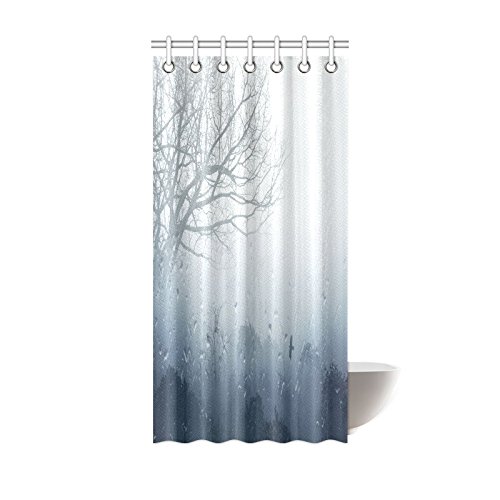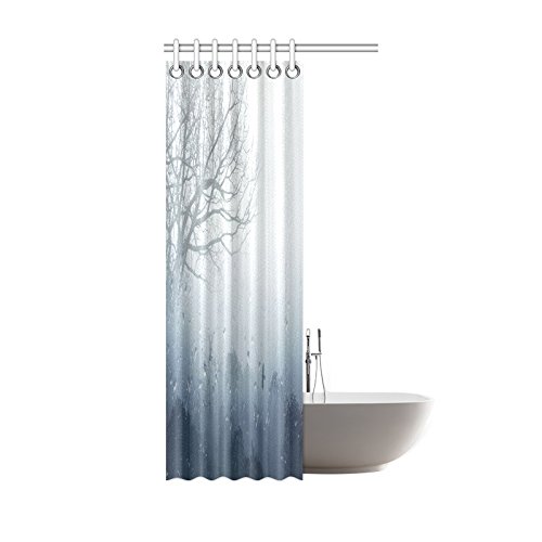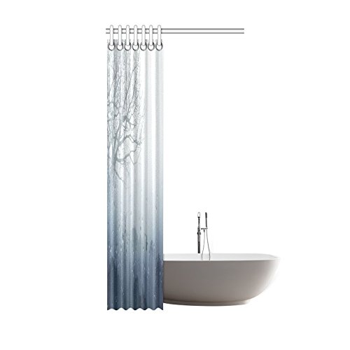 InterestPrint Rainy Scene Mystic Foggy Forest Decor, Art Romantic Window Water Drops Scene Melancholia Therapy Lonely Tree Unique Bathroom Shower Curtain 36 X 72 Inches, Denim Gray