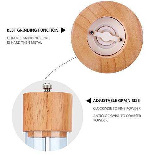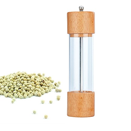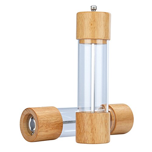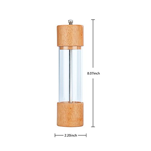 Homespace Wooden Pepper Grinders - Salt and Pepper Mills with Adjustable Coarseness - Acrylic Transparent Manual Pepper Mill - Seasoning Grinders