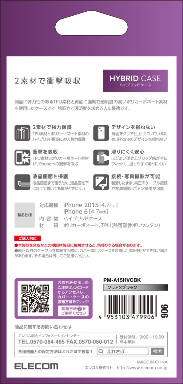 ■ A slim style hybrid case using elastic TPU material on the side and polycarbonate material that is tough and highly transparent on the back.