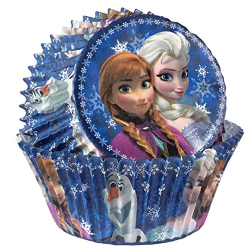 - Sisters Elsa and Anna are poised together on the bottom of the baking cup, surrounded by snowflakes! Olaf, Elsa and Anna encircle the sides on a snowing blue background, so you get a bite of the scene from any angle! The standard-size 2 in. baking cups are perfect for your favorite cupcake recipes.