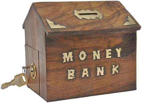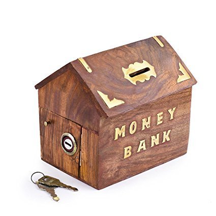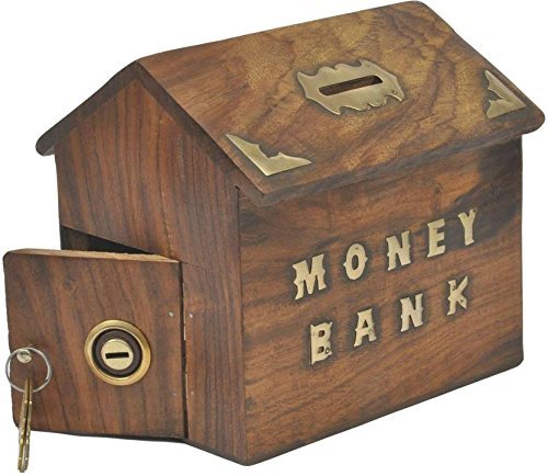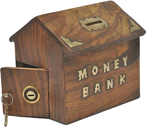Special Gift for Your Sister at this Rakhi wooden Money Bank Hut Shape , Golden Butterfly With lock Coin Box, Money Storage Box.