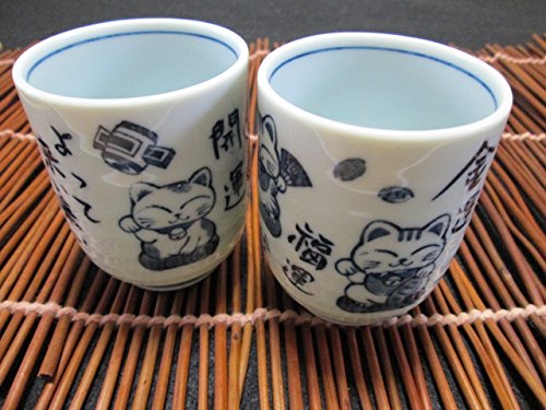 -. Title : Rare/Japanese tea cups/MANEKI NEKO/Lucky Cat/a set of 2 cups/Green tea/Japan
