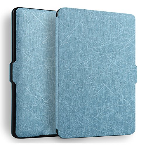 -. Feature : This case is made of eco-friendly PU with leather-like touch, water, dirt resistance and scratch-free. Applicable only to Kindle Paperwhite 1/2/3. / It is molded with the kindle product ensuring high precision. Manufactured by an established supplier. / Thickness after mounting this case is only 13 mm, compared to 9.1mm before mounting it. / The upper cap is made of soft microfiber to gently contact through a magnetic strip with the screen. / Flip-flap opening/closing ensures better user-friendly experience. Color: Light Blue.
