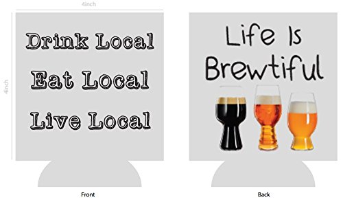 Life is Brewtiful | Drink Local Quotes Can Cooler | Beer Beverage Holder - Beer Gifts Home - Quality Neoprene No Fade Can Wrap
