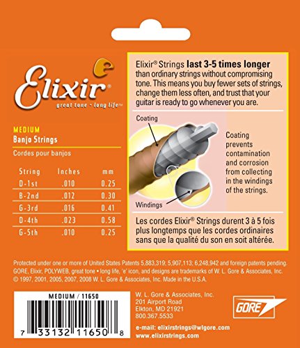 Elixir Strings Banjo Strings w POLYWEB Coating, Medium (.010-.010)