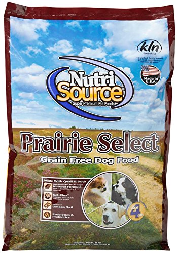 With quail as the first ingredient, Nutrisource Prairie Select with Quail, Duck & Turkey Grain-Free Dry Dog Food is delicious and easy for your dog to digest. This grain-free, natural formula is made for all life stages and uses an exclusive “Good 4 Life” system to provide the finest quality ingredients available. NutriSource uses BioPlex proteinated minerals and Sel-Plex selenium yeast to give dogs highly bioavailable minerals that are easy for the body to absorb. Your pup will also benefit from glucosamine, chondroitin, prebiotics, probiotics and balanced omegas. The high nutrient density and added vitamins and minerals make NutriSource Prairie Select a nutritious and healthy choice for your dog.