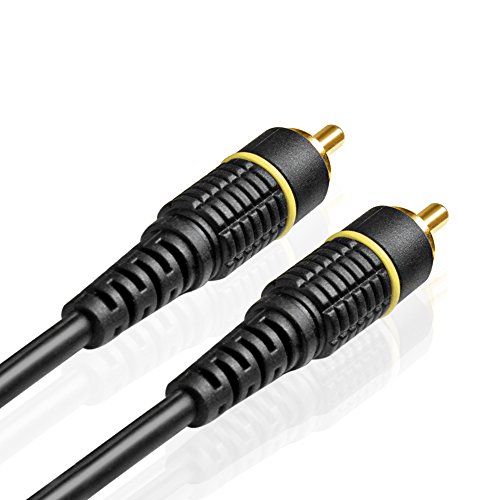TNP Subwoofer S/PDIF Audio Digital Coaxial RCA Composite Video Cable (15 Feet) - Gold Plated Dual Shielded RCA to RCA Male Connectors - Black