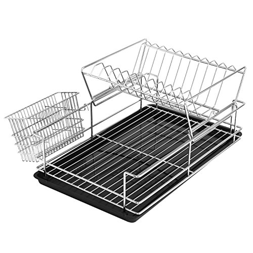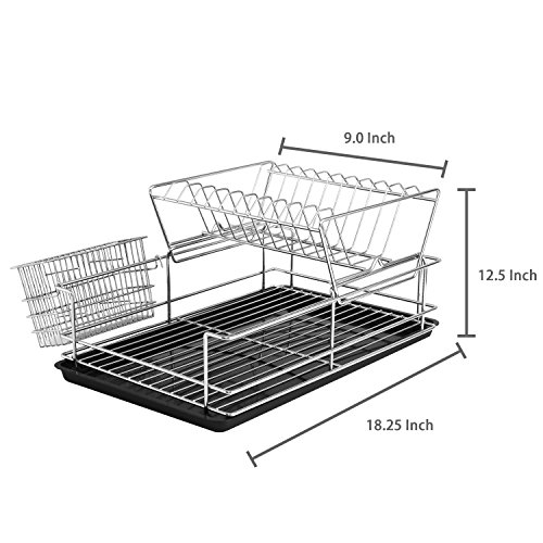 -. Brand : MyGift -. Color : Silver -. Feature : Modern sleek chrome plated dish drying rack. / Features 2-tiers with a large base for cups and bowls, a removable 12 plate rack, utensil basket and black rubber feet. / Perfect for drying a large amount of dishes while keeping your countertop clutter-free. / *Proudly Made in Taiwan.* Official MyGift product. Dishes and mugs not included. / Approximate Dimensions (in inches): 12.5 H X 18.25 W X 9.0 D. -. Label : MyGift -. Manufacturer : MyGift -. MPN : TB-KIT0769SIL -. NumberOfItems : 1 -. PackageQuantity : 1 -. PartNumber : TB-KIT0769SIL -. ProductGroup : Kitchen -. ProductTypeName : KITCHEN -. Publisher : MyGift -. Size : Large -. Studio : MyGift -. Title : 2-Tier Deluxe Chrome Plated Metal Kitchen Countertop Dish Drying Rack with Utensil Holder Basket