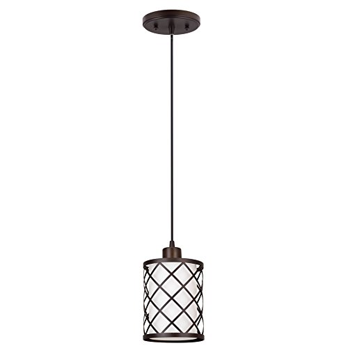 Revel Harper 10" Modern Pendant Light + Outer Lattice Metal Shade + Inner Glass Shade, Adjustable Wire, Oil-Rubbed Bronze Finish