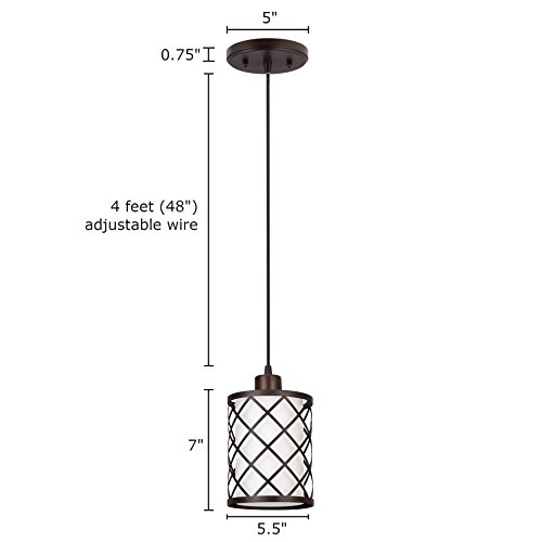 Pendant Light Dimensions: 10"(H) x 5.5"(D), Shade: 7"(H) x 5.5"(D), Canopy: .75"(H) x 5"(D), Adjustable Wire: 4ft