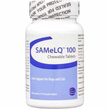 SAMeLQreg; Chewable Tablets are formulated to help support normal liver function in dogs and cats. Sadenosyl methionine (SAMe) and nacetyl L cysteine help support normal detoxification and cleansing of the liver from impurities. Glycyrrhizinate Ammonium (licorice root extract), quercetin and Ltaurine are antioxidants which help enhance the immune response. The SAMeLQreg; Chewable Tablets are readily accepted. Dogs and cats love the great taste.Feature