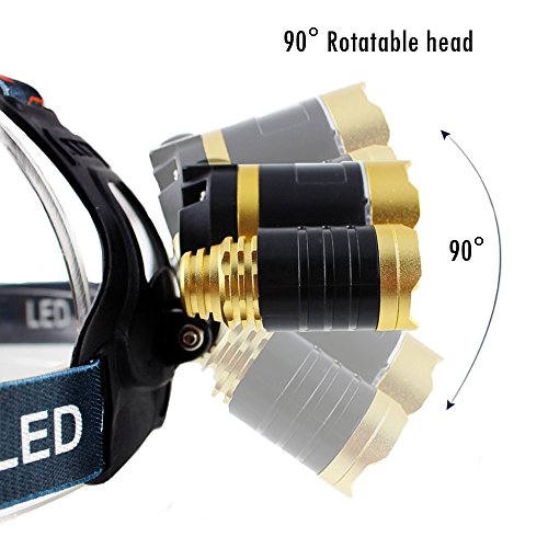 GWH 5000 Lumen Zoomable 3 T6 LED Headlamp Waterproof Outdoor Headlight Rechargeable Head Light Lamp for Camping Hunting Cycling Working Hiking