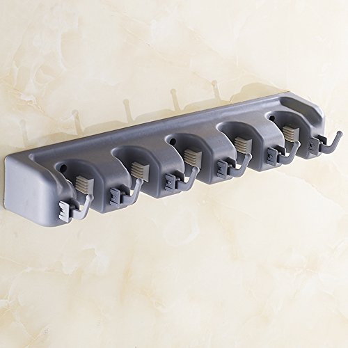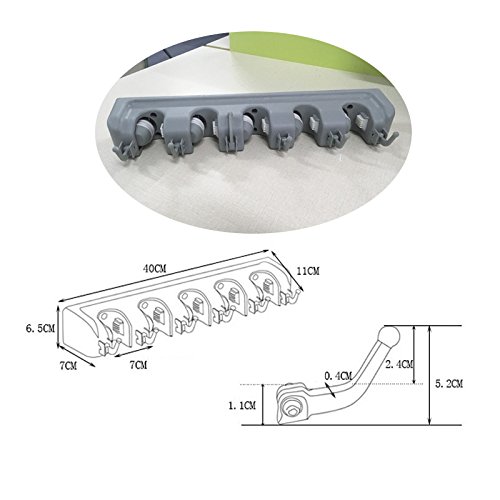 - With 5 ball slots and 6 folding hooks, the mop and broom holder allows you to organize 11 cleaning utilities in a single place.