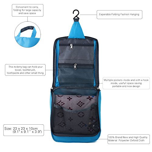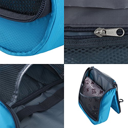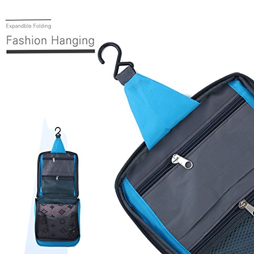uxcell® Toiletry Bag-Portable Travel Kit Organizer, Cosmetic Bag, Makeup Organizer with Hanging Hook for Business, Vacation, Household - Blue