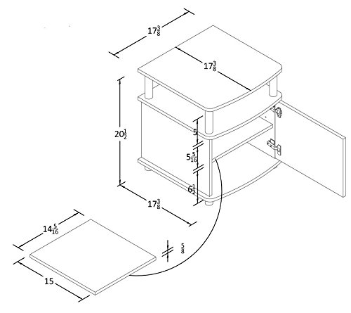 - Feature : Storage cabinet holds books and remotes / Adjustable shelf inside cabinet / Silver metal accents and hardware / Open storage shelf