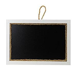 2087 White Rectangle Hanging Rustic Vintage Message Chalkboard, Erasable Wood Frame Blackboard Sign with Decorative Jute Rope (10.2Wx14.3L)