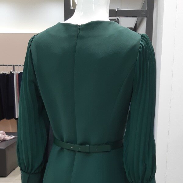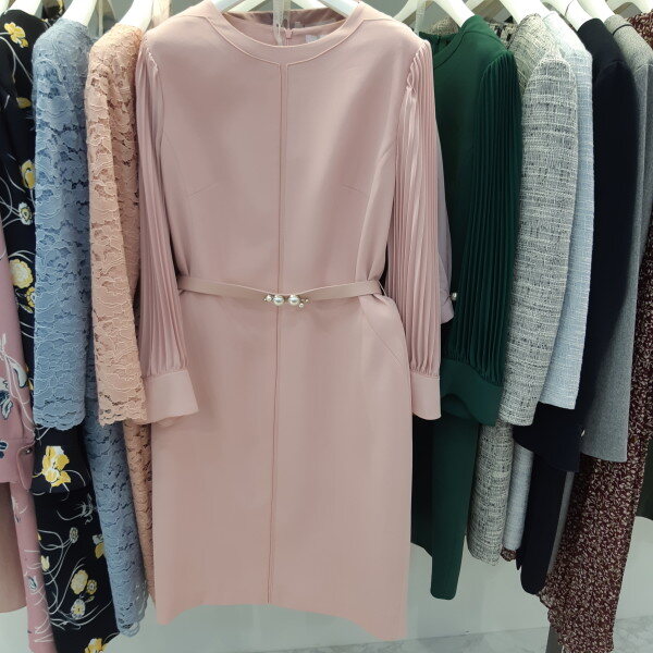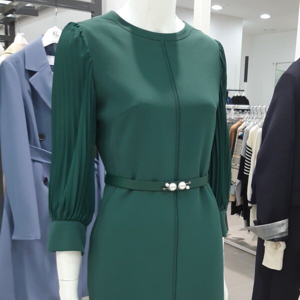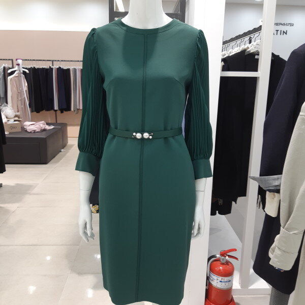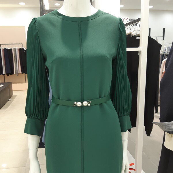 구김안가는 폴리 소재에 허리벨트에 진주장식이 더해져서 잘록하게 허리라인을 연출해 준답니다