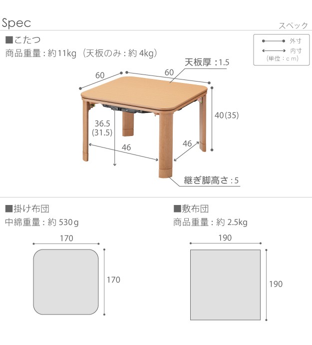 天板:幅60x奥行60cm・厚み15mm・約4kg