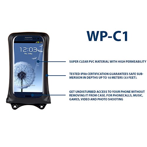 -. Binding : Wireless Phone Accessory -. Brand : DiCAPac -. Feature : Universally designed to fit all 4.5-5" phones. The WP-C1 model is compatible with any phone model up to max 3 x 0.4 x 5.76 inches in size. / Air filled small pillow keeps it afloat if you drop it in the water. Fully waterproof ensured by a double zip lock plus Velcro lock at the mouth. / Touch screen compatible transparent front window for seamless interaction with your phone. Transparent back window for camera allows you to snap away with both cameras. / Detachable neck strap included, can double as a beach wallet/essentials carrier. / All stock shipped from USA. Next day delivery available with Express shipping (excl. remote areas). -. Label : DiCAPac -. Manufacturer : DiCAPac -. PackageQuantity : 1 -. ProductGroup : Wireless -. ProductTypeName : WIRELESS_ACCESSORY -. Publisher : DiCAPac -. Studio : DiCAPac -. Title : DiCAPac WP-C1 Universal Waterproof Case for 4.5-5" Smartphones
