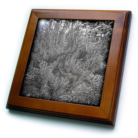 3D Rose Rosemary Bush White Framed Tile, 8" x 8", Black