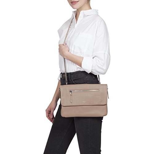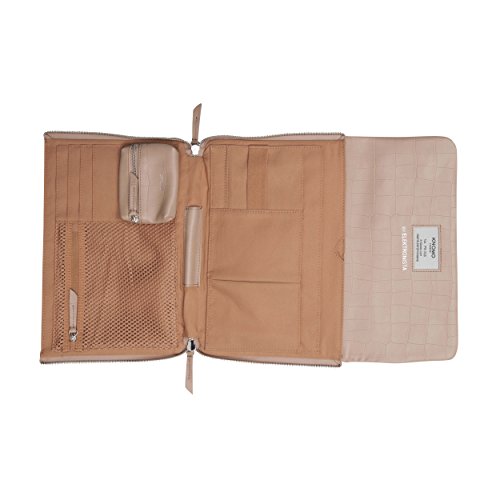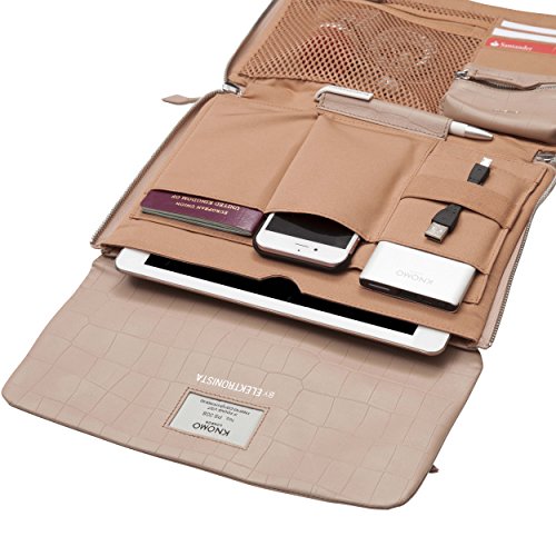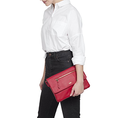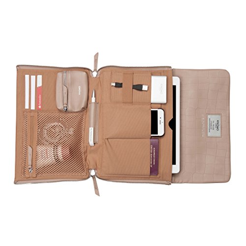 A practical organizer during the day with space for digital devices and cables, it zips to a luxurious clutch with a detachable strap making it perfect for the evening