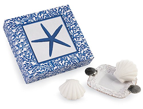 -. Feature : Shell shaped milled soaps / New in beautiful starfish gift box / Dish measures 6 x 4 1/4 x 1 inches, soaps measure 2 3/4 x 2 1/2 inches each