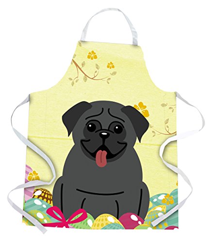 Caroline's Treasures Easter Eggs Pug black Apron, Large, Multicolor