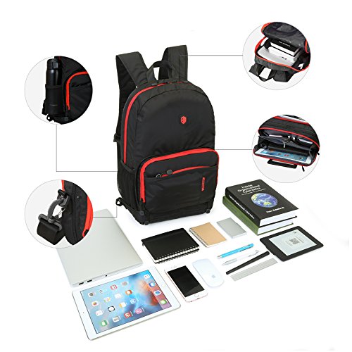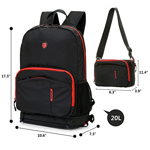 -. Feature : DURABLE- Made with rip and water resistant nylon fabric with lining/coat coated with strong PU backing avoids crumbling and falling apart. Provide strengthen and long-lasting performance with minimal weight / COMPACT- It fits into an ultra-compact pouch. Unfold size : L10.63*H17.32*W7.3 inches, Folded size: L11.4*H6.3*W3.9 inches; Durable 2-way abrasion resistant metal zipper across the backpack / LIGHTWEIGHT- Easy to folds up into small pocket. So you can easily pack it in your suitcase, purse or car and have an extra bag without it taking up space, ultra light and Handy / MULTI COMPARTMENTS- This backpack with several pockets for storage and organization. It has 1 roomy main compartment, 2 front zipper pockets to hold small accessories, 1 internal security zippered pocket for valuable items and 2 side pockets for water bottle or umbrella / PERFECT COMPANION FOR TRIPS; this compact backpack is the perfect companion when you are out and about. Perfect for day trips, vacation, travel, day hikes, school, camping and shopping
