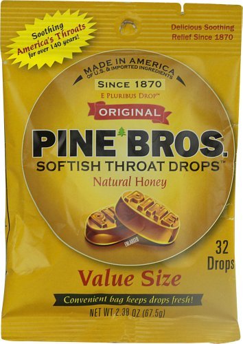 (Pine Bros.)/Health Care/Medications Treatments/DIRECT FROM USA/Pine Bros Softish Throat Drops Natural Honey 32 Count (Pack of 6)