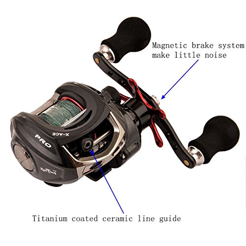 -. Title : BLISSWILL Kunting Baitcast Fishing Reel With Grey Braided Fishing Lines Left/ Right Handed 14+1BB 6.4:1 Carbon Fiber Magnetic Brake System Saltwater/Freshwater Approved
