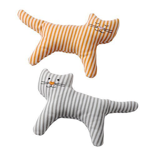 Adorable, soft fabric striped cat rattles (2 pack) perfect for infants and toddlers. The sound level of the rattle is soft, and perfect for a baby's sensitive ears. Easy to grasp for small hands.