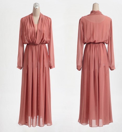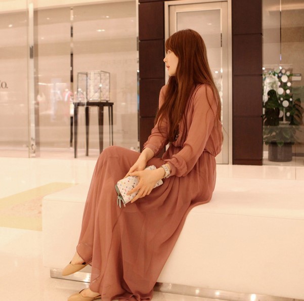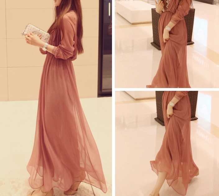 透け感のあるエレガントなマキシ丈ワンピース。