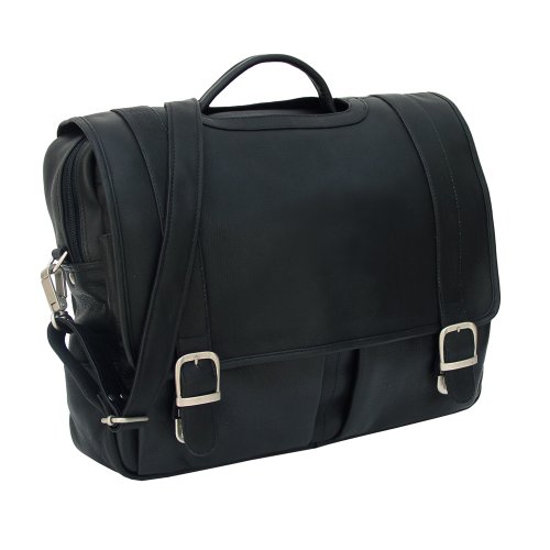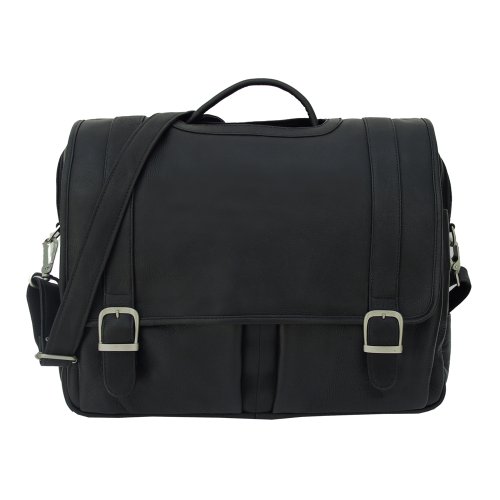 Studio : Piel Leather Publisher : Piel Leather Binding : Apparel Product Description Flap opening secured by dual clasps reveal two large pockets and long zippered pocket. Large main compartment with organizer and back zippered pocket. Fits up to 15.5 inch laptop, but compartment is not padded. Top handle for easy carrying and adjustable/detachable shoulder straps. 0