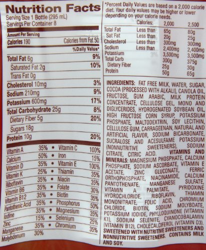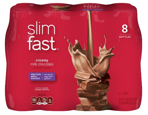 -. Binding : Health and Beauty -. Brand : Slim-Fast -. EAN : 0008346122219 -. Feature : A rich and smooth treat that will satisfy even the most stubborn sweet tooth. / Great for a meal on the go with 190 Calories / Loaded with 10g of protein and 5g of fiber per serving. / Satisfy your hunger with up to 4 hours of hunger control. / Pack of 8, 10-oz ready to drink shakes -. IsAdultProduct : 0 -. Label : Slim-Fast -. Manufacturer : Slim-Fast -. Model : 10008346122216 -. MPN : 10008346122216 -. NumberOfItems : 1 -. PackageQuantity : 1 -. PartNumber : 10008346122216 -. ProductGroup : Health and Beauty -. ProductTypeName : HEALTH_PERSONAL_CARE -. PublicationDate : 2011-09-02 -. Publisher : Slim-Fast -. ReleaseDate : 2011-09-26 -. Size : 8 Count -. Studio : Slim-Fast -. Title : SlimFast Ready to Drink Bottles, Creamy Milk Chocolate Meal Replacement Shake, 10-Ounces, 8 Count -. UPC : 008346122219