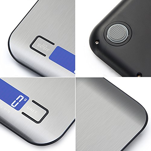 Excellent Elegant design: Stylish Stainless steel platform; Non-slip mat; violet backlight LCD display with negative white digital, even can be used in the darkness; Light weight, easy for storage; Easy to clean.