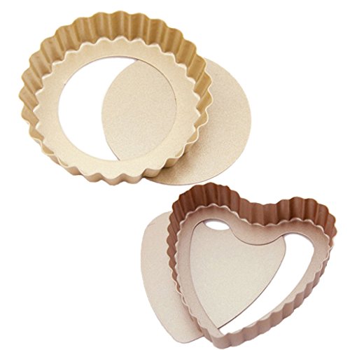 Studio : GLING Publisher : GLING Product Description Product Information: -Material:Food-grade quality heavy Weight Carbon Steel -You will receive two baking pans of different shapes, one round and one heart shaped. Special design: - Removable bottom for easy access - The fluted sides of the quiche pan increase the surface area, which in turn creates a strong crust capable of holding and containing the heavy ingredients of a quiche or a fruit tart. - Non-stick finish for easy food release and cleanup. NOTE: Dishwasher is Unavailable since it will destroy the non-stick coating. About Service: We promise to offer good quality products to make you satisfied. We make every effort to provide quality services. Please contact our customer service if there's any question. 0