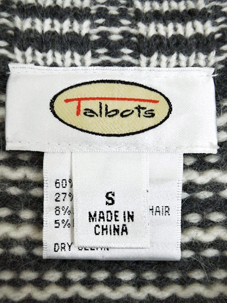 Ladies ブランドTalbots タルボット カラーグレー・白 メール便不可 コンディション★★★ 素材ウール・アンゴラ・ナイロン 表記サイズS 実寸サイズ 着丈 58 cm 身幅 42 cm 肩幅 38 cm 袖丈 49 cm ※ウエスト・ヒップ以外は平置き採寸【code】#b