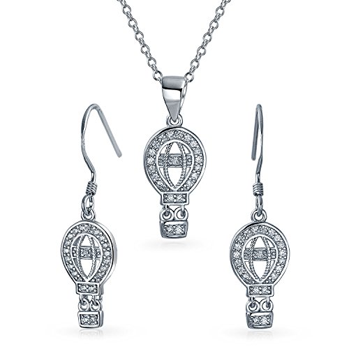 -. Title : Bling Jewelry 925 Silver Clear CZ Hot Air Balloon Necklace Earring Set