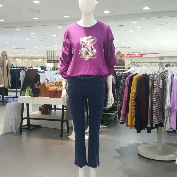 기본7부 티셔츠에 소매셔링과 앞판 프린트가 포인트되는 티셔츠입니다