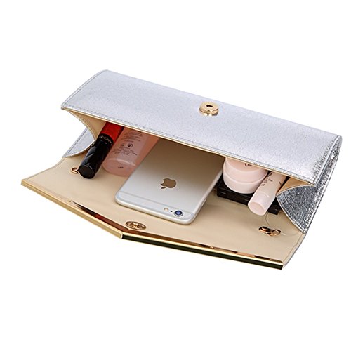 - The luxurious and spacious satin lined interior provides plenty of room for your valuable thing,such as cell phone,small wallet,mirror,lipstick,makeups,cash,credit card,car keys.
