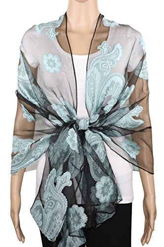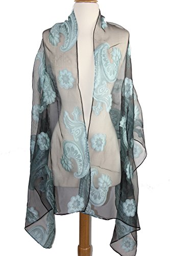 1. This light weight cover up can spice up your outfits with its sultry sheer elegance and beautiful floral embroidery while keeping you cool for the summer. 2. Add a distinctly contemporary look to your accessories repertoire with this sheer burnout velvet fabric exquisite floral design scarf. 3. Whether its your train commute, office cocktail party, church event, or just a stroll in the park, you'll consistently look chic with this burnout fabric scarf. 4. It is lovely, delicate and a beautiful "burnout" style is eye catching and lady like. 0 |