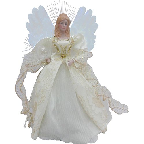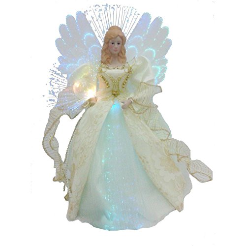 HOLIDAY FIBER OPTIC LED CREAM & GOLD 12 INCH ANGEL TREE TOPPER / CENTERPIECE