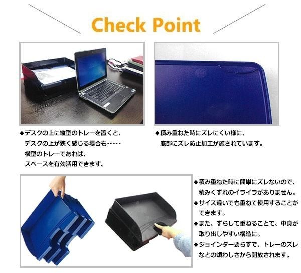 スペースを有効に活用できる、横型レタートレーです。スタッキング可能。