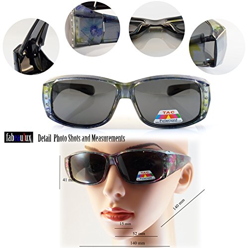 FBL Floral Pattern Bling Rectangular Polarized OTG Sunglasses P009