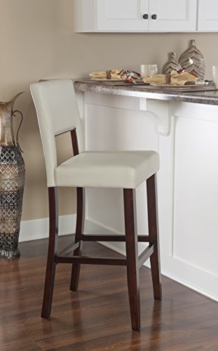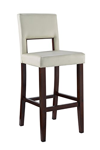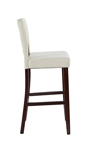 -. Feature : Solid wood frame with vinyl upholstery / Choice of dark brown or white vinyl / Dark espresso wood finish / Cushioned seat and backrest / Elegantly tapered legs