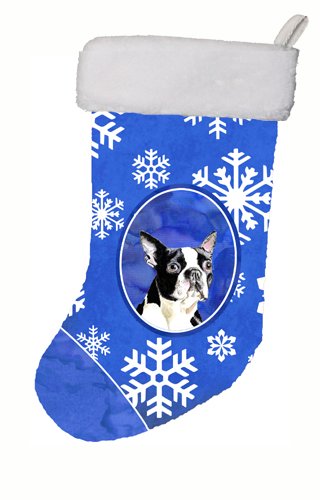 Caroline's Treasures SC9360-CS Boston Terrier Winter Snowflakes Christmas Stocking, 11 x 18", Multicolor