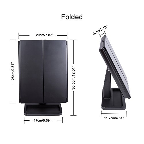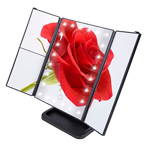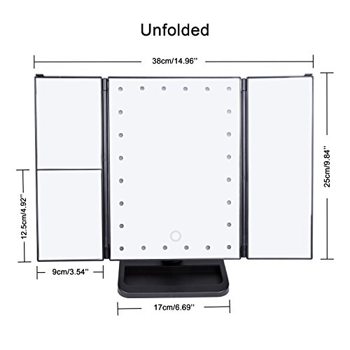 Folded Potable Lighted Vanity Mirror Cosmetic Mirror with 24 LED Lights,Smart Touch Screen Makeup Mirror and 3X/2X/1X Magnification,Two Power Supply Mode(Battery&USB),Black