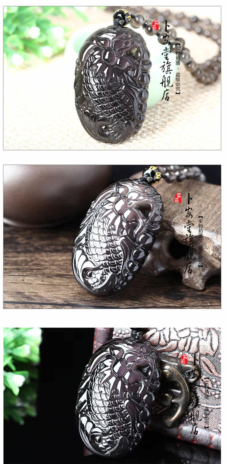 开光灵鳌夺魁居灵鳌争鸣吊坠 鳌鱼龙鱼冰种黑曜石龙鲤镇宝吊坠