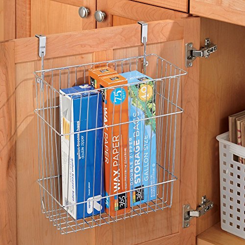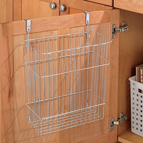 InterDesign Classico Over Cabinet Wastebasket or Storage Organizer Basket for Kitchen, Chrome